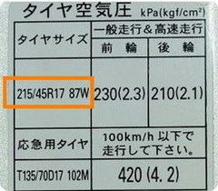 標準装備のタイヤのサイズや空気圧を確認することができます。