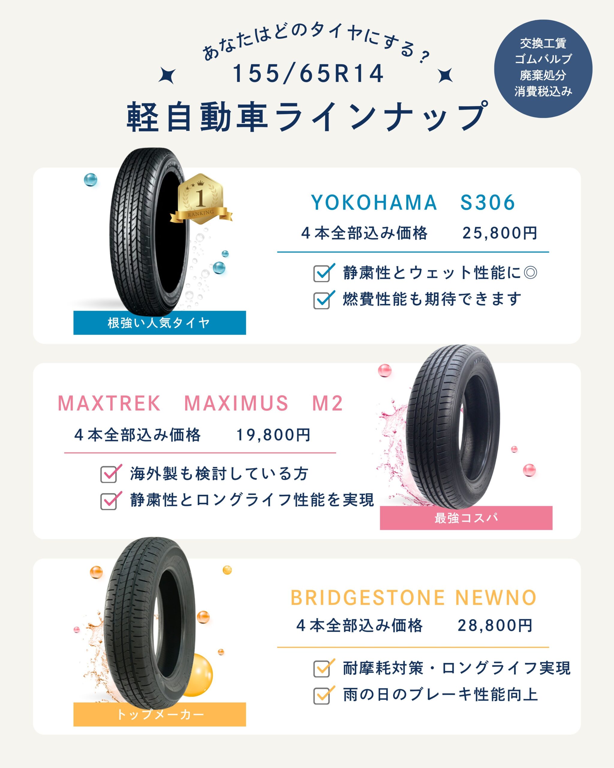155/65R14のサイズの軽自動車にお乗りの方へおすすめっ!