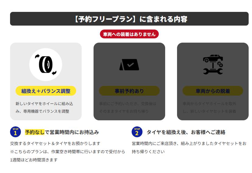 予約フリーとは・・・・通常工賃の20%引きの料金でタイヤ交換できるサービスです