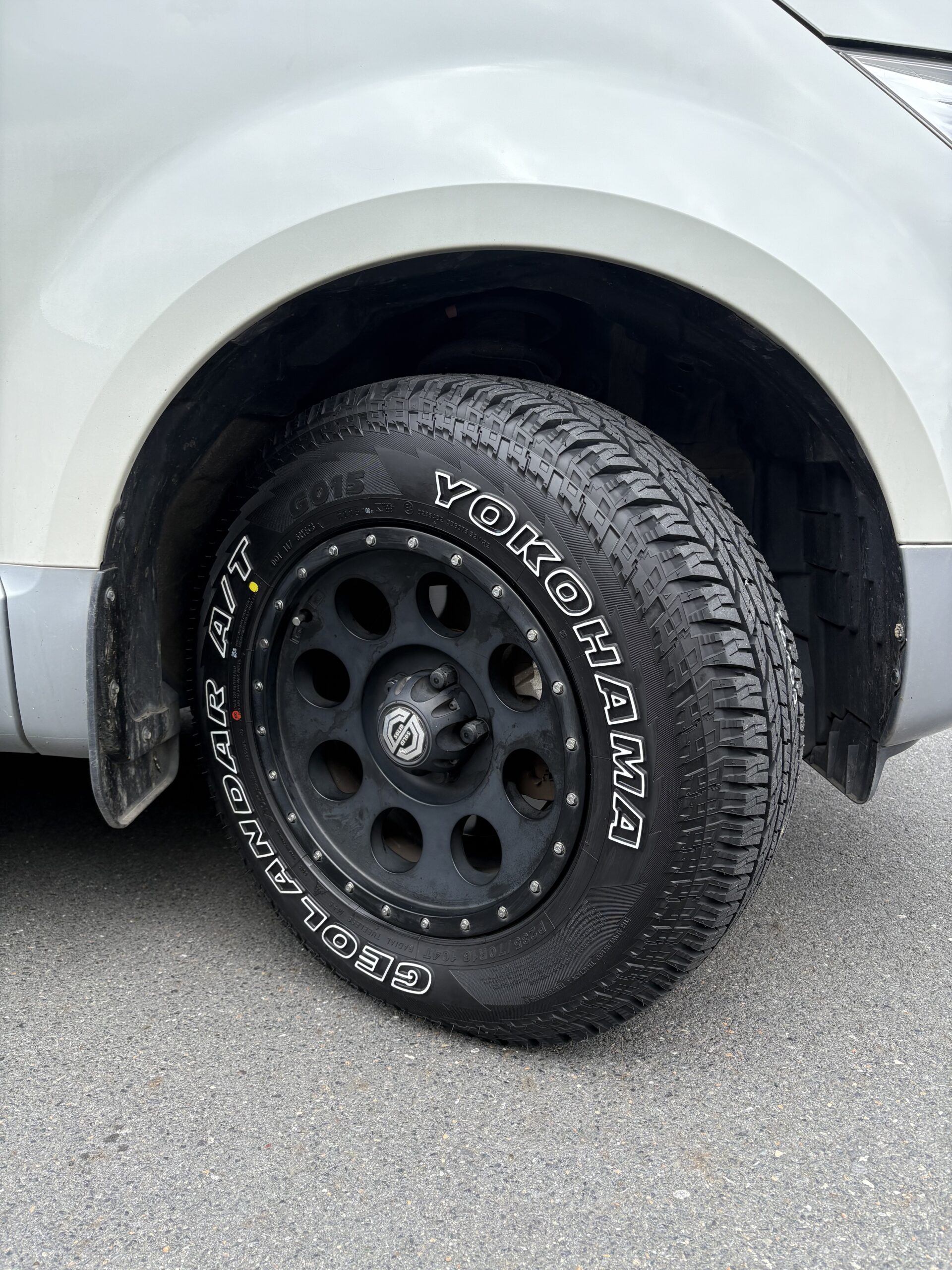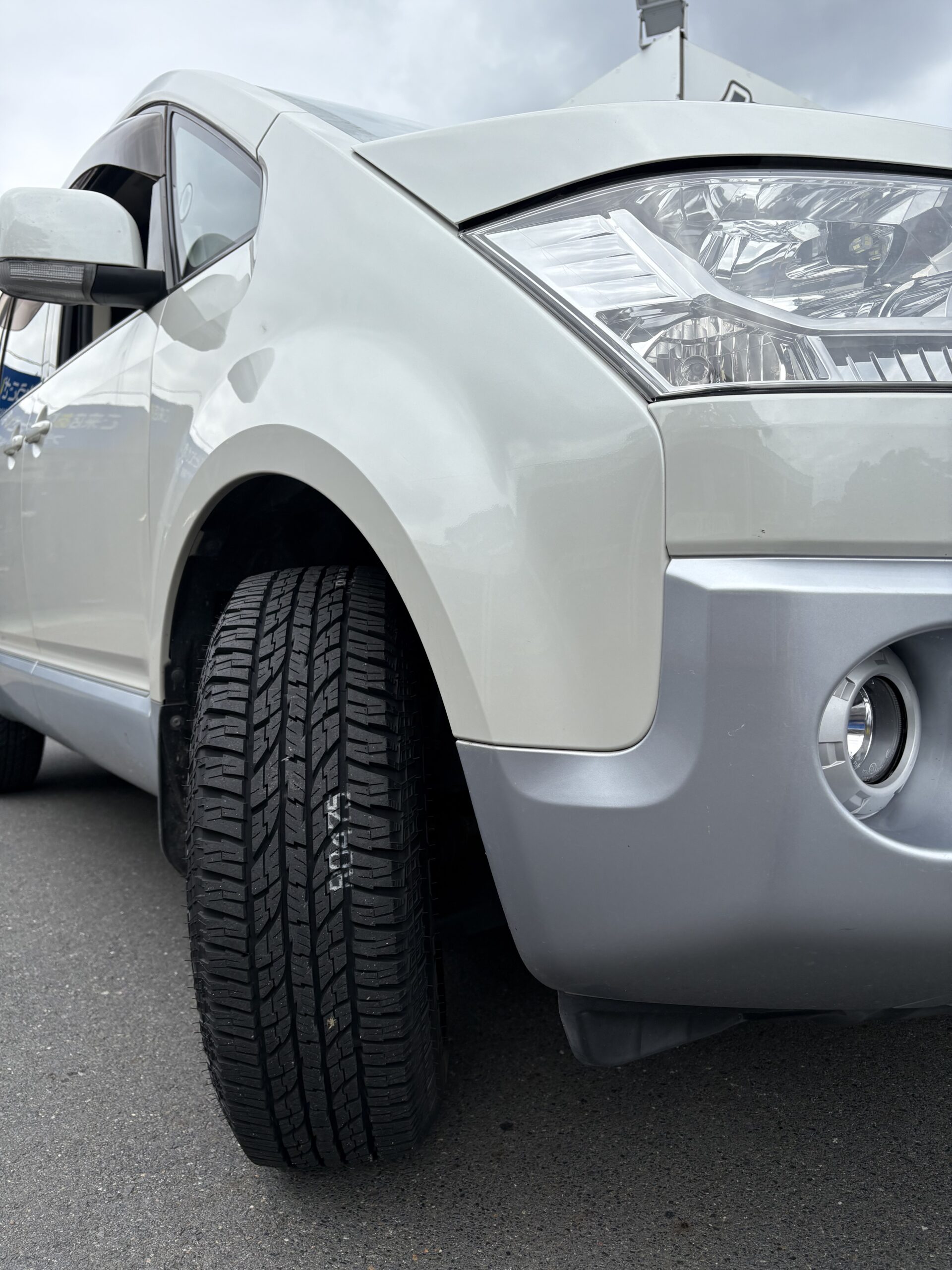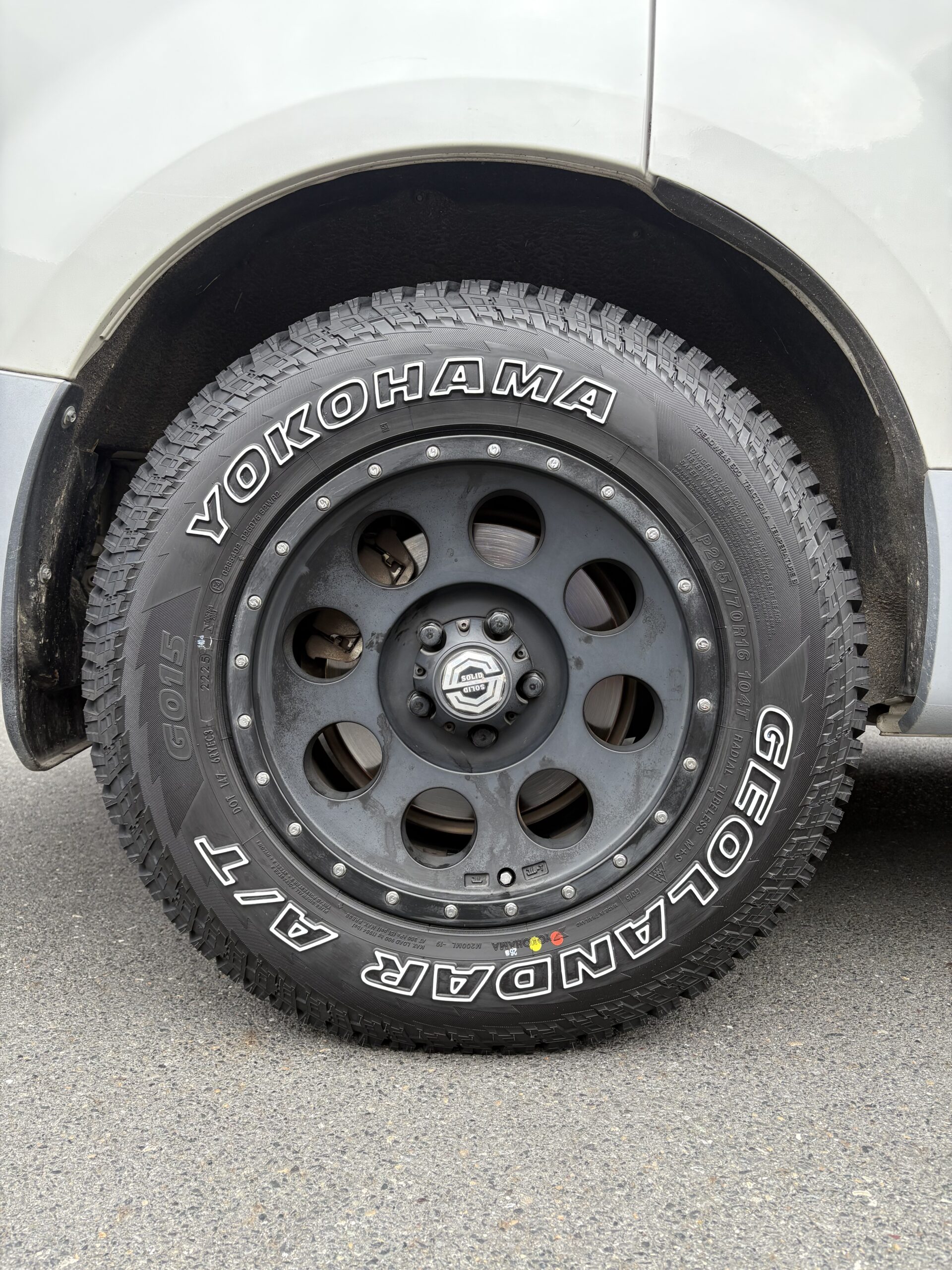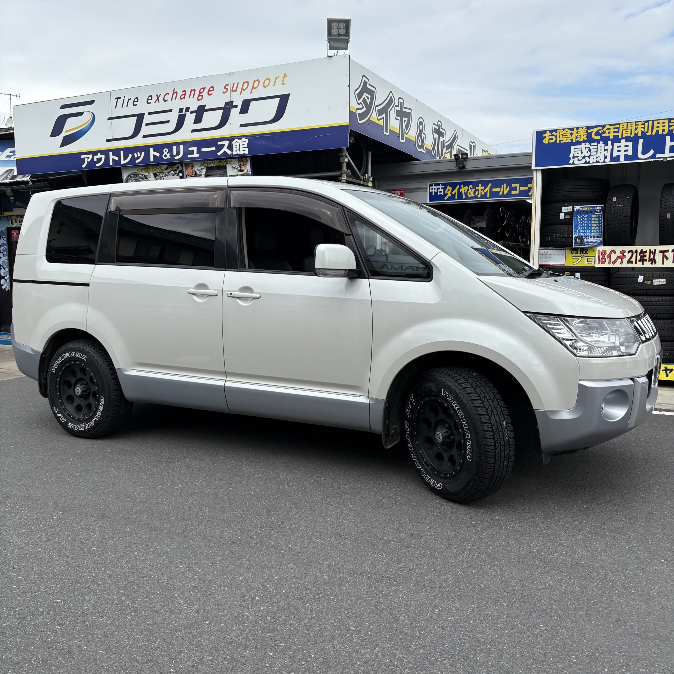 ミツビシ デリカD5の初めてご来店のお客様。A/Tタイヤのホワイトレターのタイヤ交換です。「安心できました」と当店へも嬉しいお言葉をいただきました。