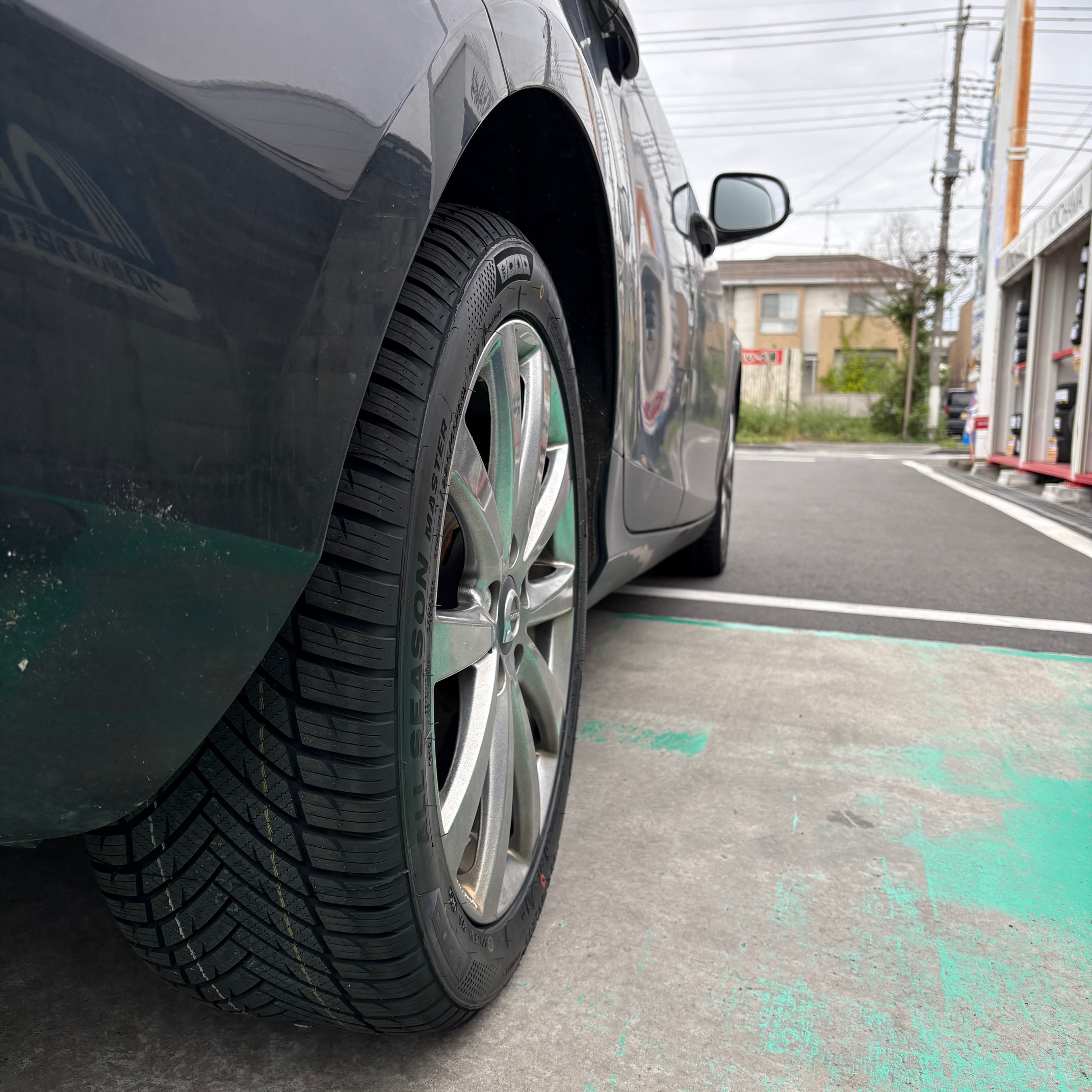 ボルボのV40・D4のお客様。最近交換の多いミネルバのオールシーズンタイヤ。サイズ展開も多く、またお値段も安価なため年間を通してこの1本!